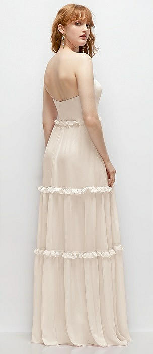 Strapless Chiffon Maxi Dress with Tiered Micro Ruffle Full Skirt in oat