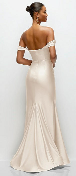 Off-the-Shoulder Corset Stretch Satin Mermaid Dress with Slight Train in oat