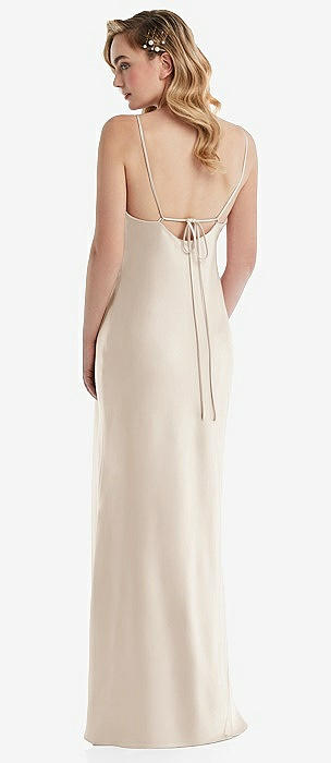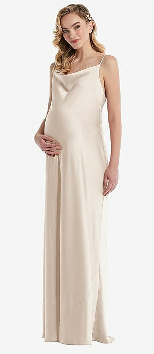Cowl-Neck Tie-Strap Maternity Slip Dress in oat