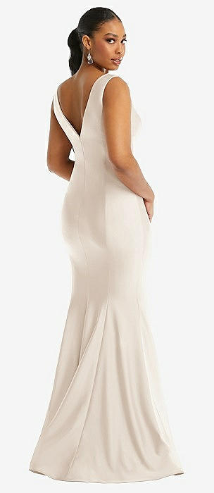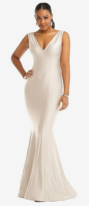 Shirred Shoulder Stretch Satin Mermaid Dress with Slight Train in oat