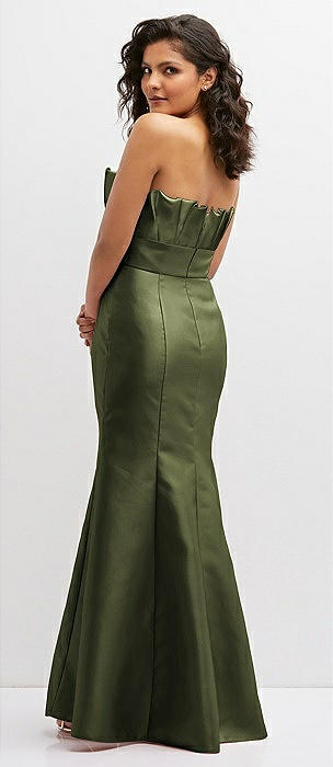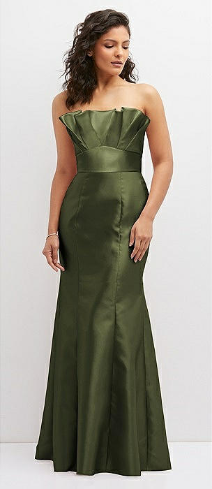 Strapless A-line Satin Gown with Modern Bow Detail in olive green