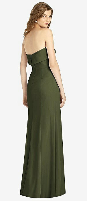 Strapless Satin Gown with Draped Front Slit and Pockets in olive green