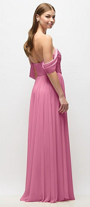 Chiffon Corset Maxi Dress with Removable Off-the-Shoulder Swags in orchid pink