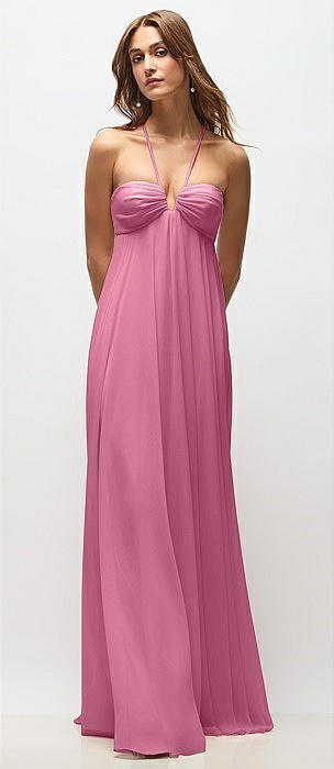 Empire Waist Chiffon Halter Maxi Dress with Convertible Spaghetti Straps in orchid pink