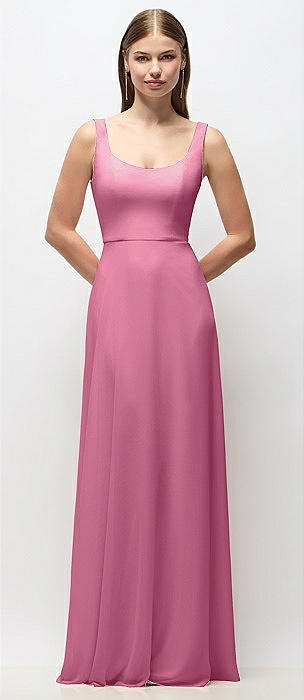 Scoop Neck Tank Strap Chiffon Maxi Dress in orchid pink