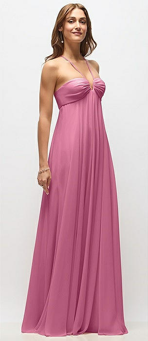 Empire Waist Chiffon Halter Maxi Dress with Convertible Spaghetti Straps in orchid pink