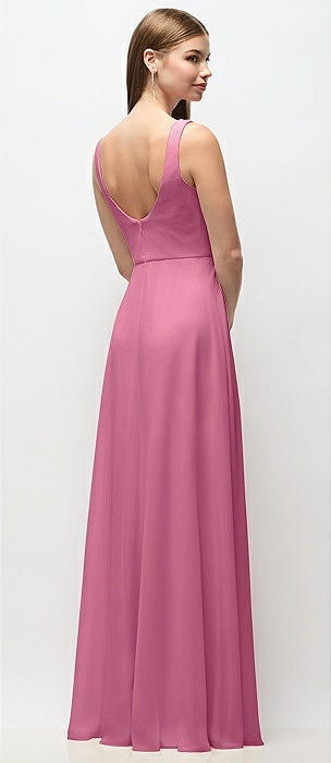 Square Neck Chiffon Maxi Dress with Circle Skirt in orchid pink