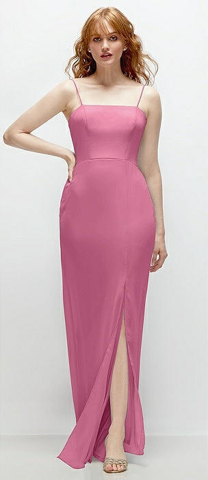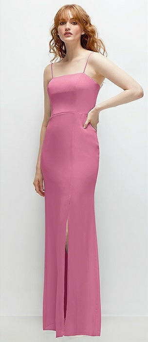 Spaghetti Strap Draped Skirt Gown with Front Slit in orchid pink