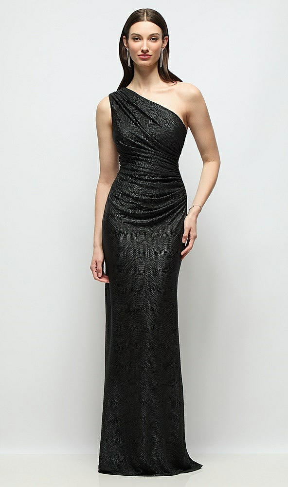 One-Shoulder Soho Metallic Ruched Waist Gown in Black