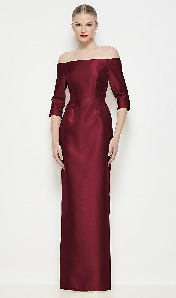 Off-the-Shoulder 3/4 Sleeve Column Satin Maxi Dress in Cabernet