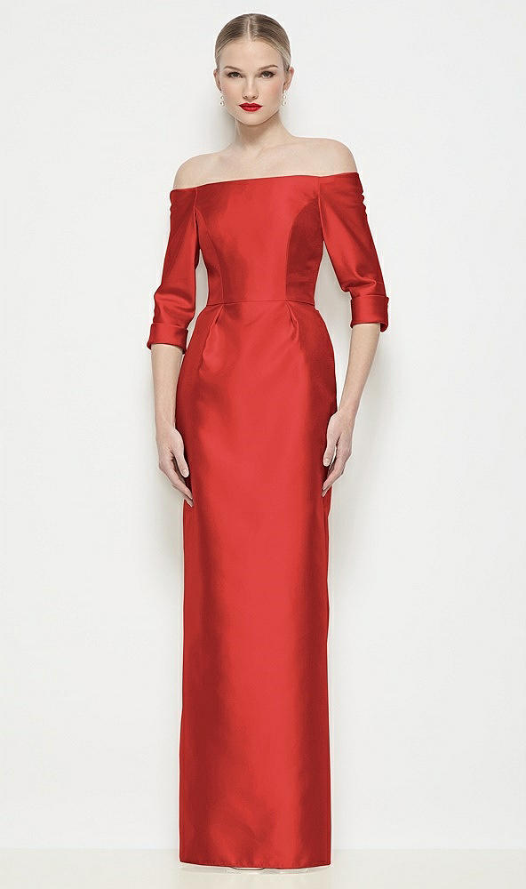Off-the-Shoulder 3/4 Sleeve Column Satin Maxi Dress in Poppy Red