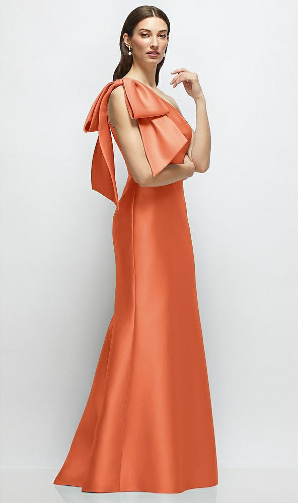 Bow One-Shoulder Satin Maxi Dress with Trumpet Skirt in Portofino Orange