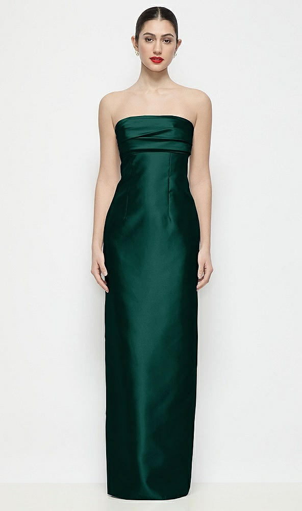 Strapless Pleated Empire Satin Column Maxi Dress in Evergreen