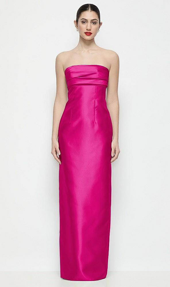 Strapless Pleated Empire Satin Column Maxi Dress in Think Pink