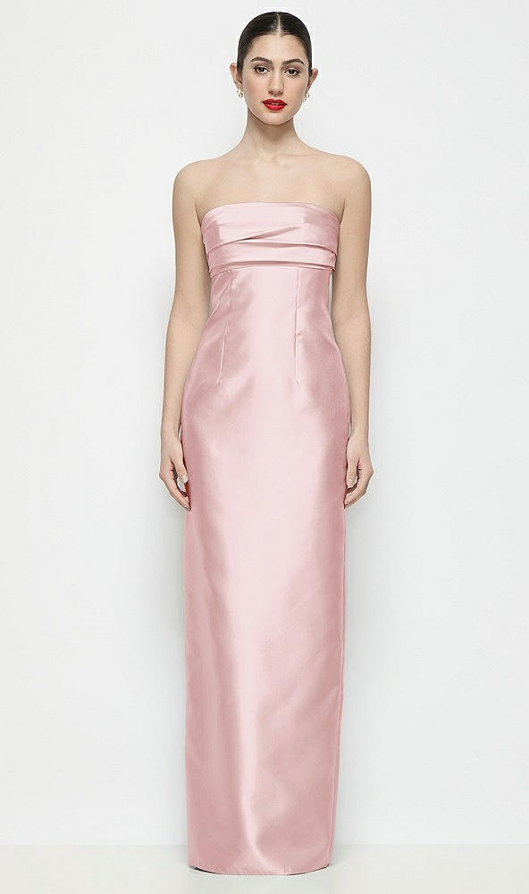 Strapless Pleated Empire Satin Column Maxi Dress in Ballet Pink