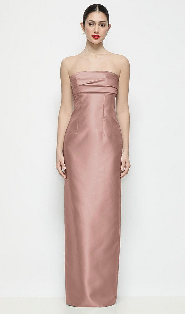 Strapless Pleated Empire Satin Column Maxi Dress in Neu Nude