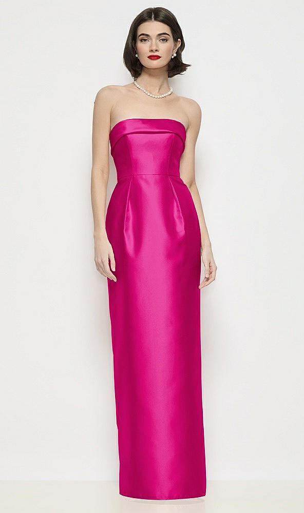 Strapless Cuff Neck Satin Maxi Dress with Column Skirt in Think Pink