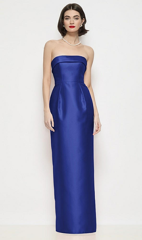 Strapless Cuff Neck Satin Maxi Dress with Column Skirt in Cobalt Blue