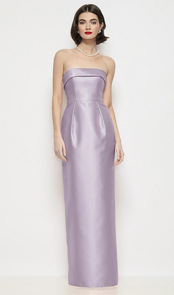Strapless Cuff Neck Satin Maxi Dress with Column Skirt in Lilac Haze