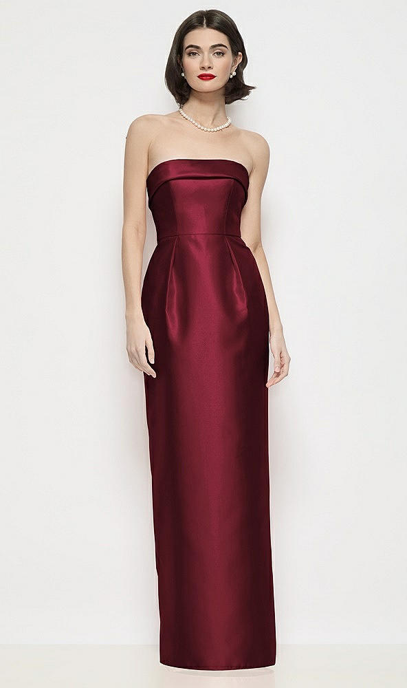 Strapless Cuff Neck Satin Maxi Dress with Column Skirt in Cabernet