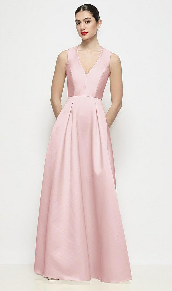 Sleeveless V-neck Satin Maxi Dress with Pleated Skirt in Ballet Pink