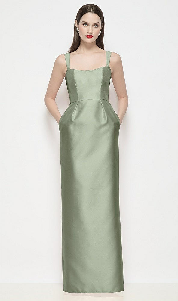 Shaped Strap Basque Neck Satin Maxi Dress with Column Skirt in Sage