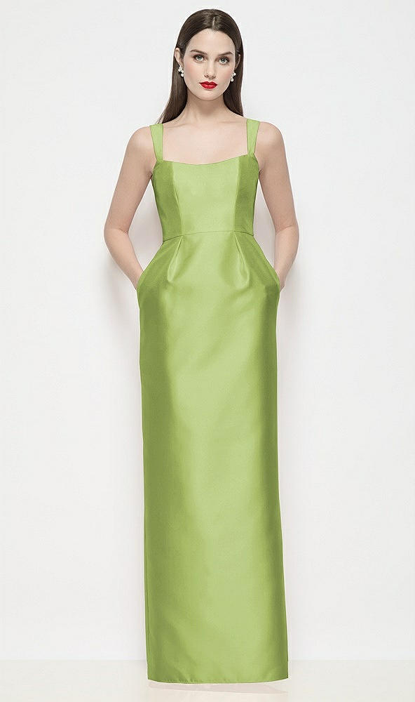 Shaped Strap Basque Neck Satin Maxi Dress with Column Skirt in Mojito