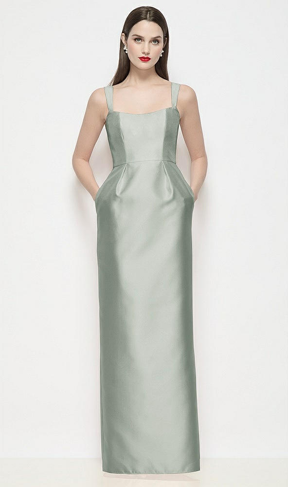 Shaped Strap Basque Neck Satin Maxi Dress with Column Skirt in Willow Green
