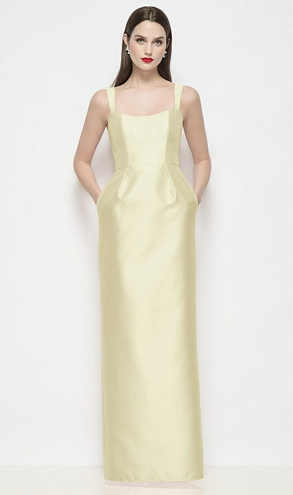 Shaped Strap Basque Neck Satin Maxi Dress with Column Skirt in Butter Yellow