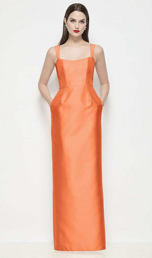 Shaped Strap Basque Neck Satin Maxi Dress with Column Skirt in Portofino Orange