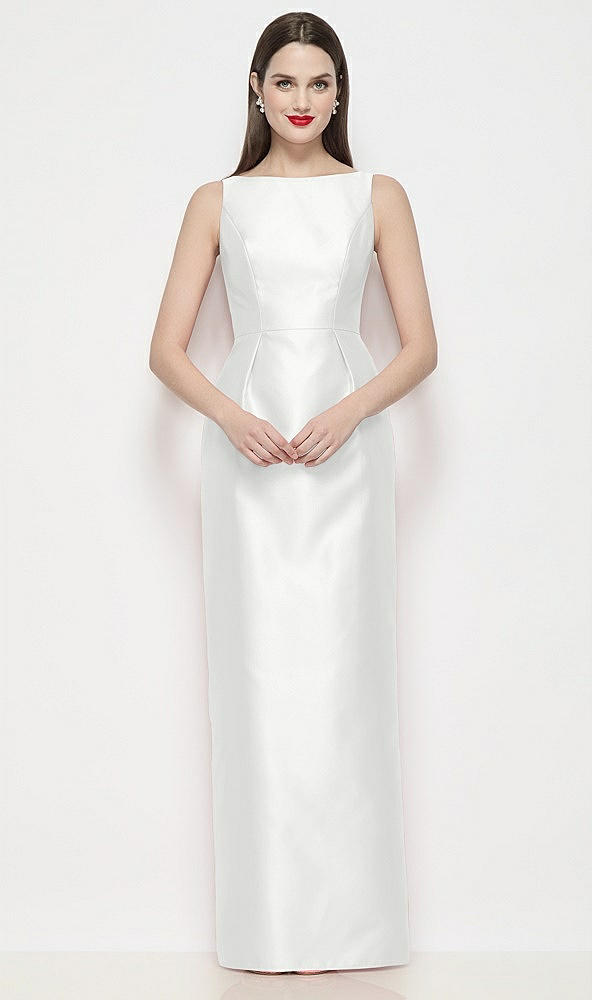 Bateau Neck Satin Maxi Dress with Pleated Column Skirt in White