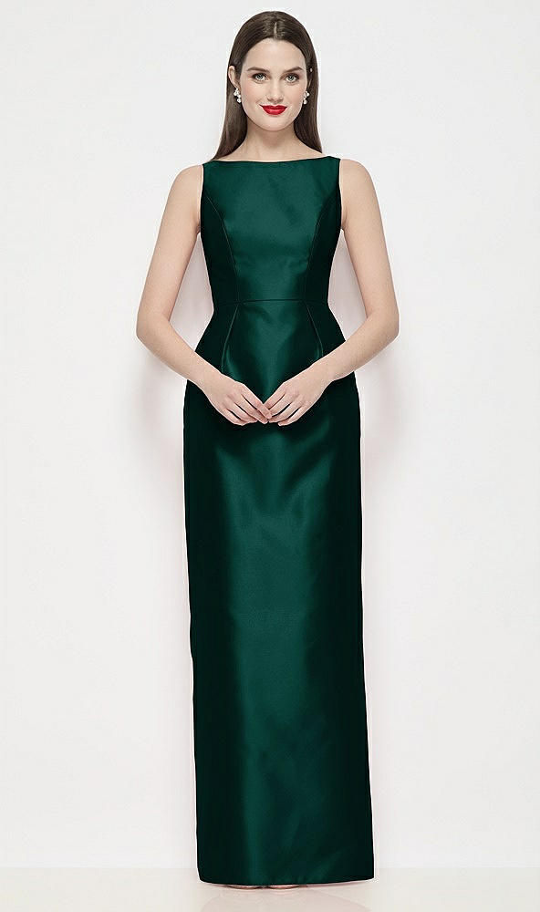 Bateau Neck Satin Maxi Dress with Pleated Column Skirt in Evergreen
