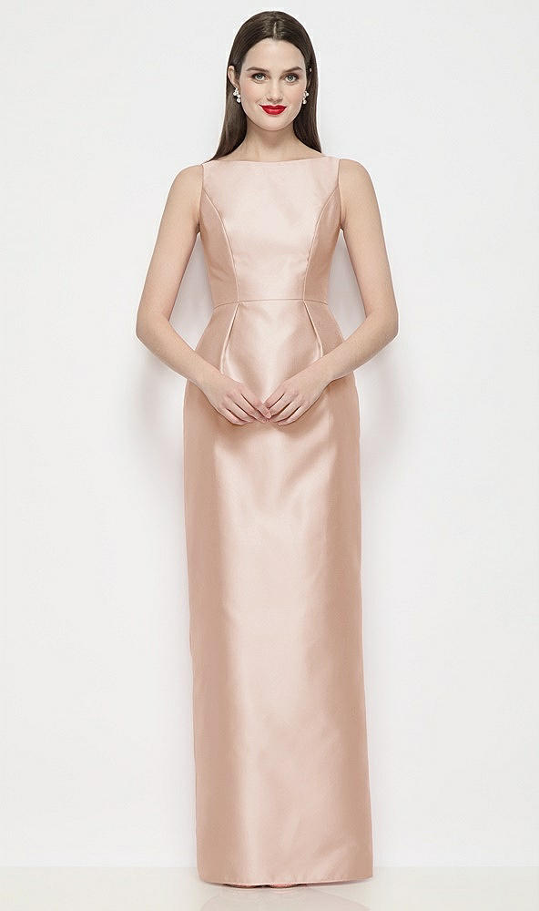 Bateau Neck Satin Maxi Dress with Pleated Column Skirt in Cameo