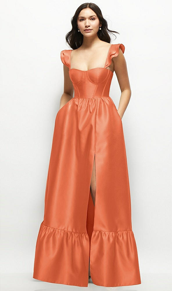 Satin Corset Maxi Dress with Ruffle Straps & Skirt in Portofino Orange