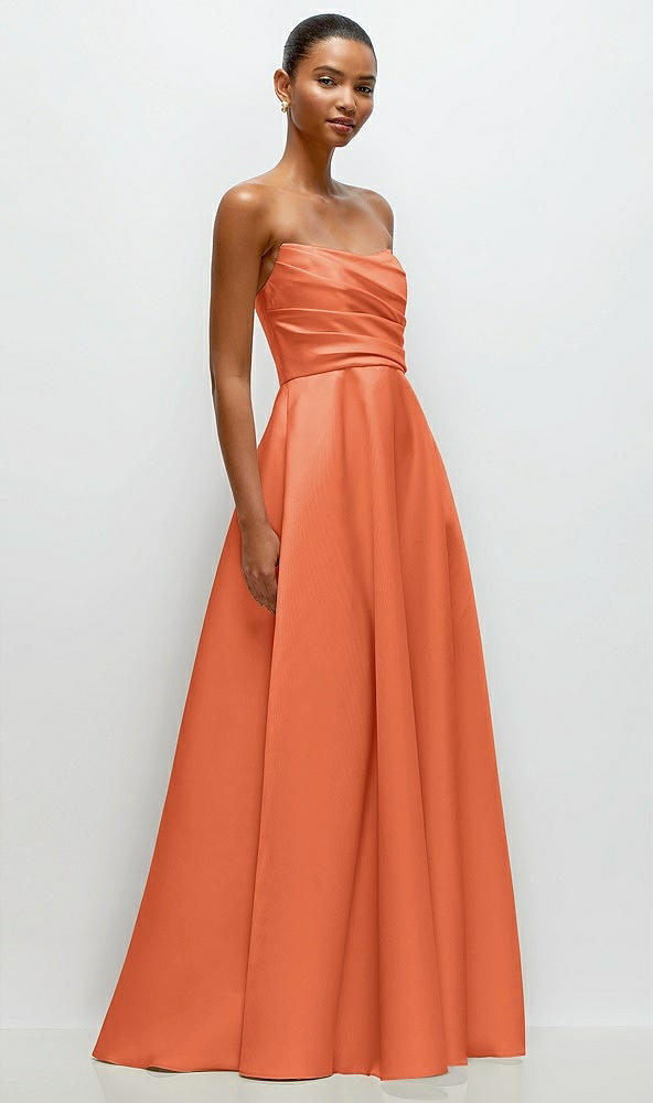 Strapless Draped Cat-Eye Satin Maxi Dress with Full Skirt in Portofino Orange