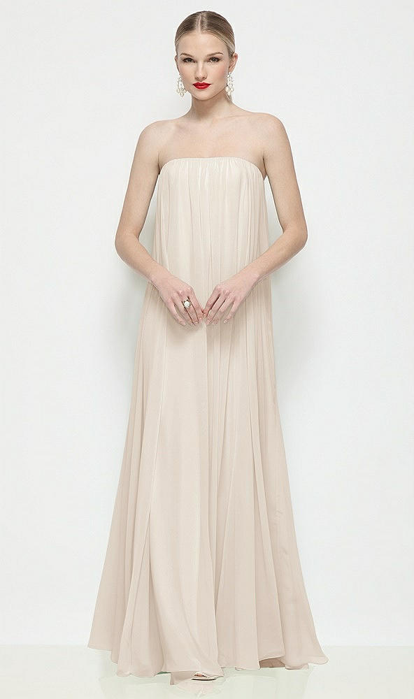 Strapless Shirred Chiffon Trapeze Maxi Dress in Oat