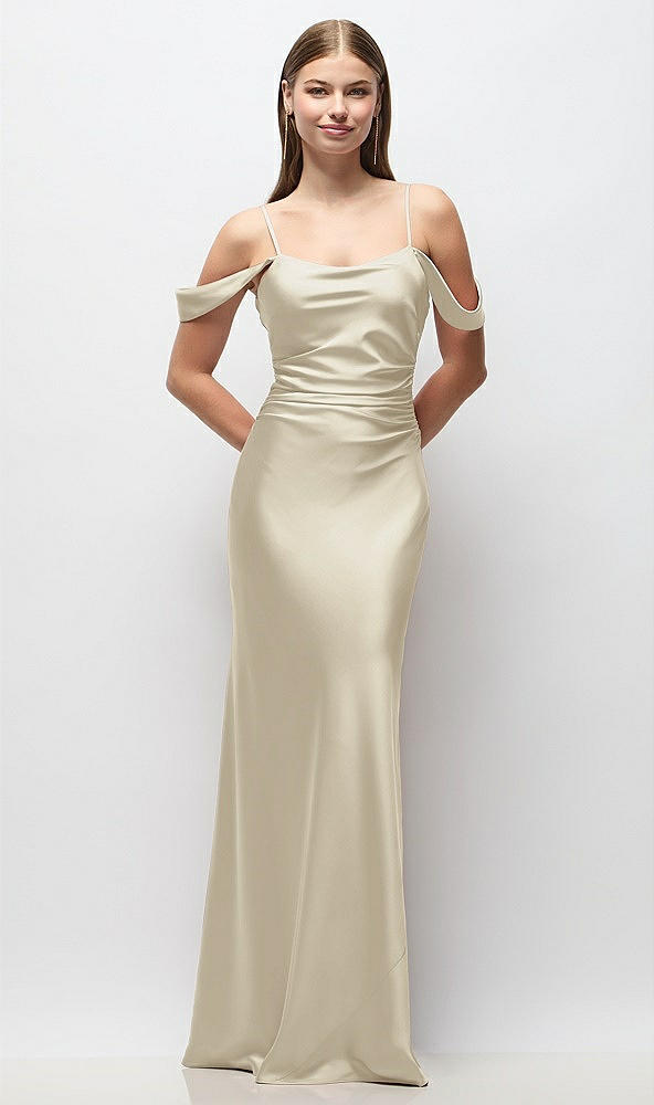 Off-the-Shoulder Swag Ruched Side Satin Bias Maxi Dress with Adjustable Spaghetti Straps in Champagne