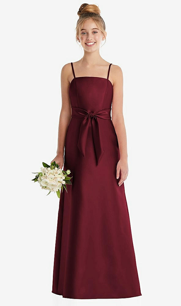 Spaghetti Strap Satin Junior Bridesmaid Dress with Mini Sash in Cabernet