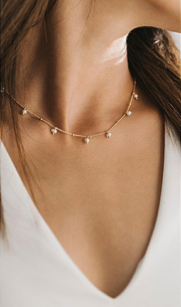 Rear View Thumbnail - Natural Pearl Dotted Gold Necklace