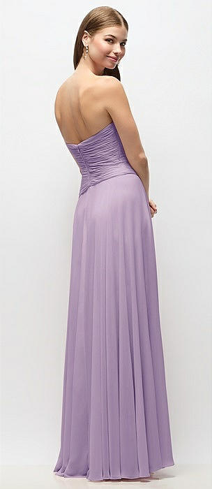 Strapless Pleated Surplice Chiffon Maxi Dress with A-Line Skirt in pale purple