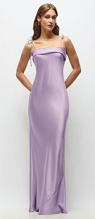 Cuff Neck Satin Bias Maxi Dress with Self-Tie Spaghetti Straps in pale purple