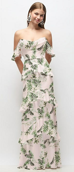 Breezy and tropical, this palm beach print on lux chiffon is like a vacay in dress form. Our Palm Beach patterned bridesmaid dresses have got a totally chill Palm Beach vibe with a sprinkle of lush green palms that pop on a soft, pale pink canvas—giving us all the sunset stroll feels. Outfit your crew in these dreamy Palm Beach light pink bridesmaid dresses, and get ready to serve looks that scream summer lovin' chic without saying a word.