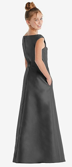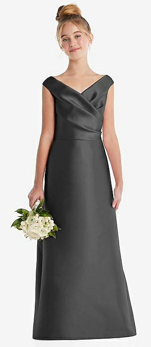 Off-the-Shoulder Draped Wrap Satin Junior Bridesmaid Dress