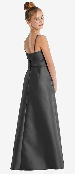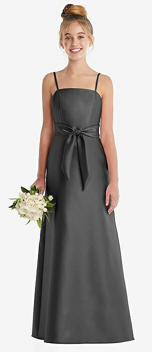 Spaghetti Strap Satin Junior Bridesmaid Dress with Mini Sash