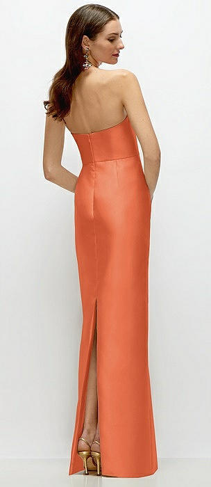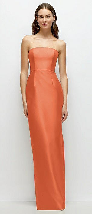 Strapless Satin Column Dress with Back Slit in portofino orange