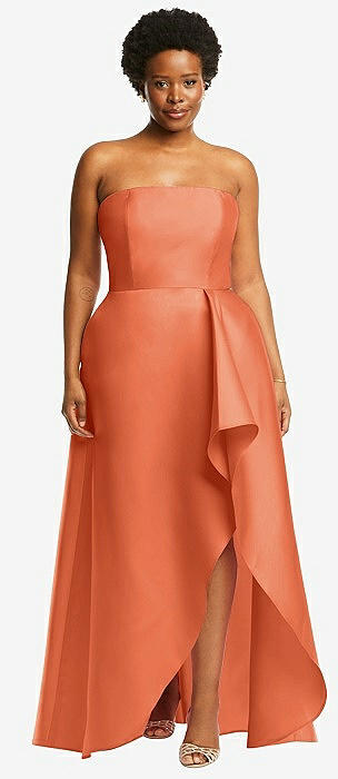 Strapless Satin High Low Dress with Pockets in portofino orange