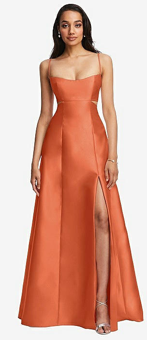 Open Neckline Cutout Satin Twill A-Line Gown with Pockets in portofino orange