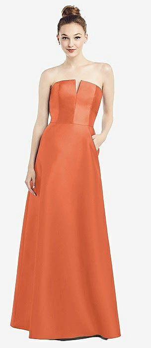 Strapless Notch Satin Gown with Pockets in portofino orange