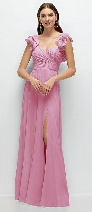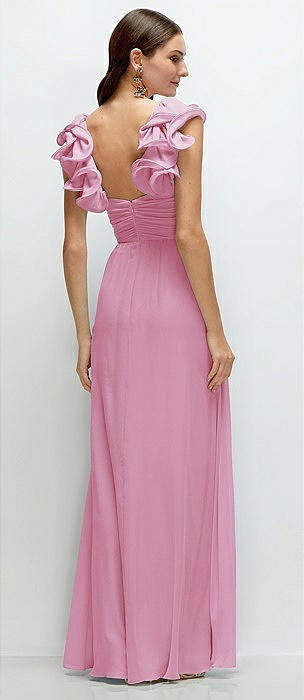 Dramatic Ruffle Edge Strap Chiffon Maxi Dress in powder pink