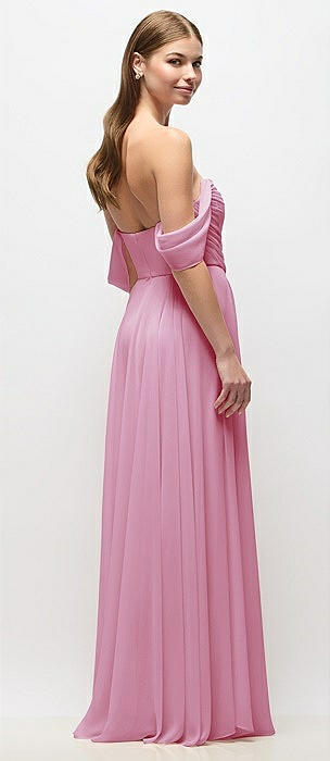 Strapless Chiffon Maxi Dress with Asymmetrical Ruched Drop Waist in powder pink